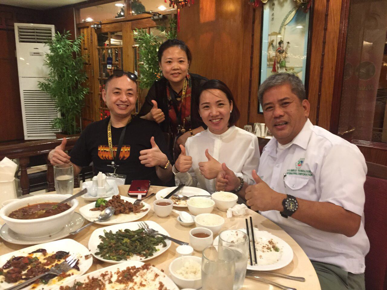 前不久還有國外客戶來工廠參觀,並且合(hé)影留(liú)念!我公司宴請國(guó)外客戶品嚐中國菜,客戶對中(zhōng)國的美食讚不絕口,表示非常喜愛中國美食!